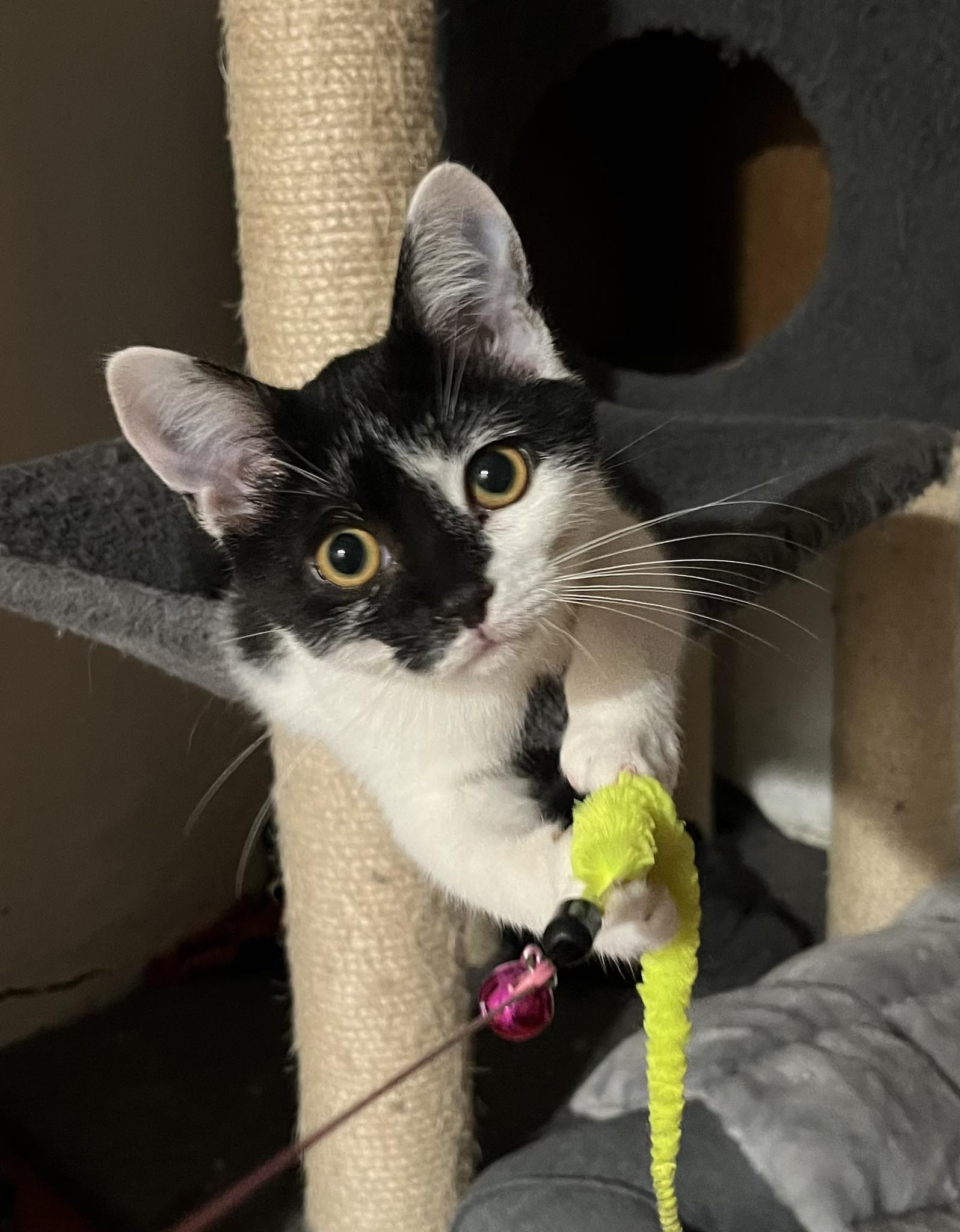 Ett permanent hem sökes åt Jenny-Ann. Hon flyttar gärna med någon kompis från katthuset, annars måste det redan finnas en lekfull kattkompis i hemmet. I sitt hem vill hon få tillgång till en innätad balkong/uteplats, eller utevistelse på kattvänligt område när hon fyllt 1 år.