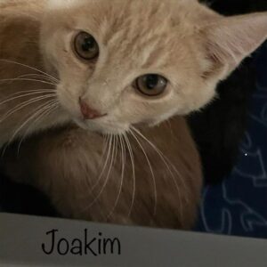 Joakim är en blyg liten kattpojke som uppskattningsvis föddes i maj 2025. Han fångades in i Malmö i augusti tillsammans med bröderna Benjamin och Ludwig efter rapporter om att de jagades av barn varje dag. Joakim finns nu i katthuset i Pärup, Hörby.