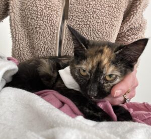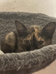 Joy är en liten kattflicka som kom in från en kattkoloni i Ynglingarum i augusti 2025. Hon finns nu i katthuset i Pärup, Hörby.
