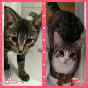 Vi är snälla och rara och födda under 2025. Vi har inget emot andra katter, men stödmattes kattfarbror gillar inte oss, så det är väl ett skäl till att vi bör hitta något eget. Han kommer undviker gärna att komma hem, det är ju lite synd om honom då, tycker hon.