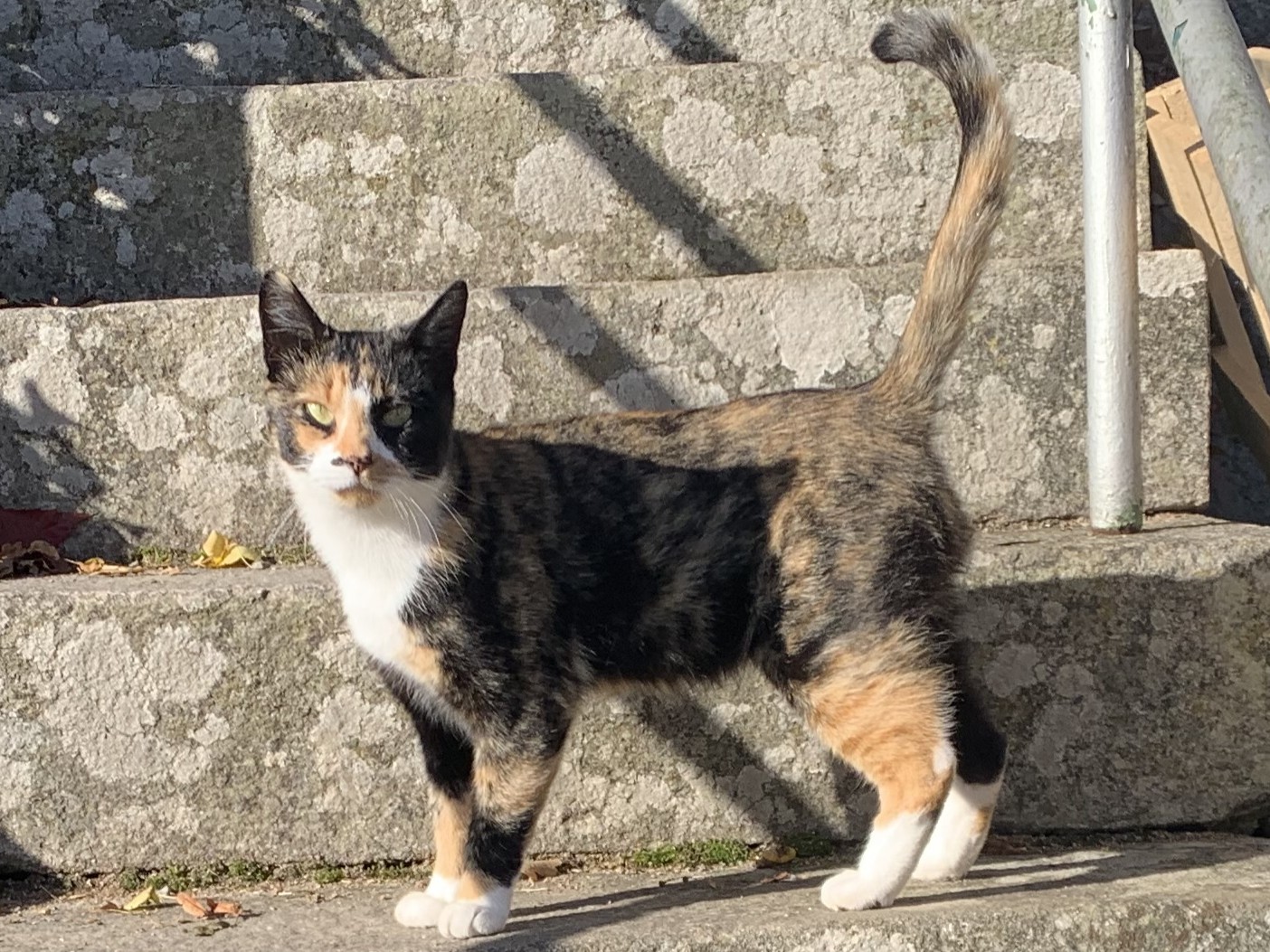 Lissi föddes 2024. Hon kan söka skydd i en källare tillsammans med släktingar och får mat dagligen. Men personen som bor i fastigheten har hög ålder och är sjuk och har därför inte möjlighet att mata katterna. En granne hjälper till med matningen.