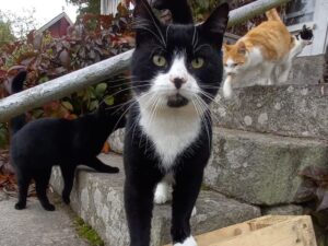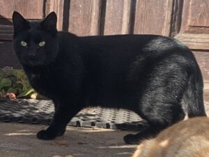 Nisse föddes 2024. Han kan söka skydd i en källare tillsammans med släktingar och får mat dagligen. Men personen som bor i fastigheten har hög ålder och är sjuk och har därför inte möjlighet att mata katterna. En granne hjälper till med matningen.
