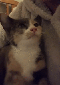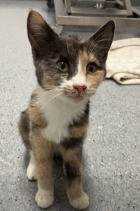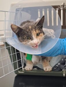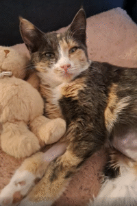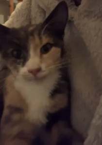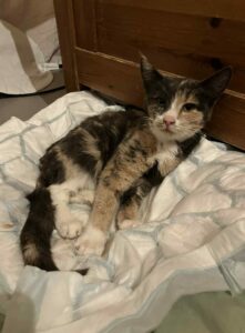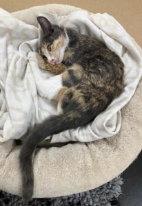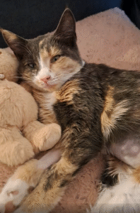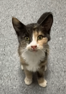 Sonja är en liten kattflicka som föddes omkring maj 2025 kom in i oktober. Hon var förvirrad, avmagrad och uttorkad när hon hittades vid Hörröd utanför Hörby där hon åt av hundmat som var utsatt för infångning av en förrymd hund. Sonja finns nu i katthuset i Bus, Hörby. Hon har visat sig vara en helt tam, kontaktsökande tjej som bara vill vara nära och inte kan få nog av gos.